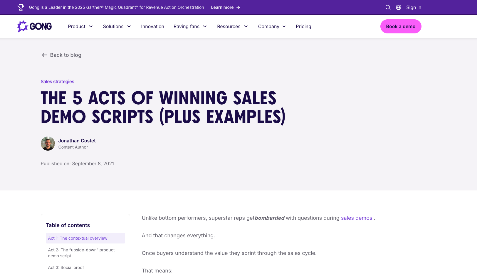 Gong. The 5 acts of winning sales demo scripts (plus examples). Gong.io. 2021. Available from: https://www.gong.io/blog/demo-script-examples