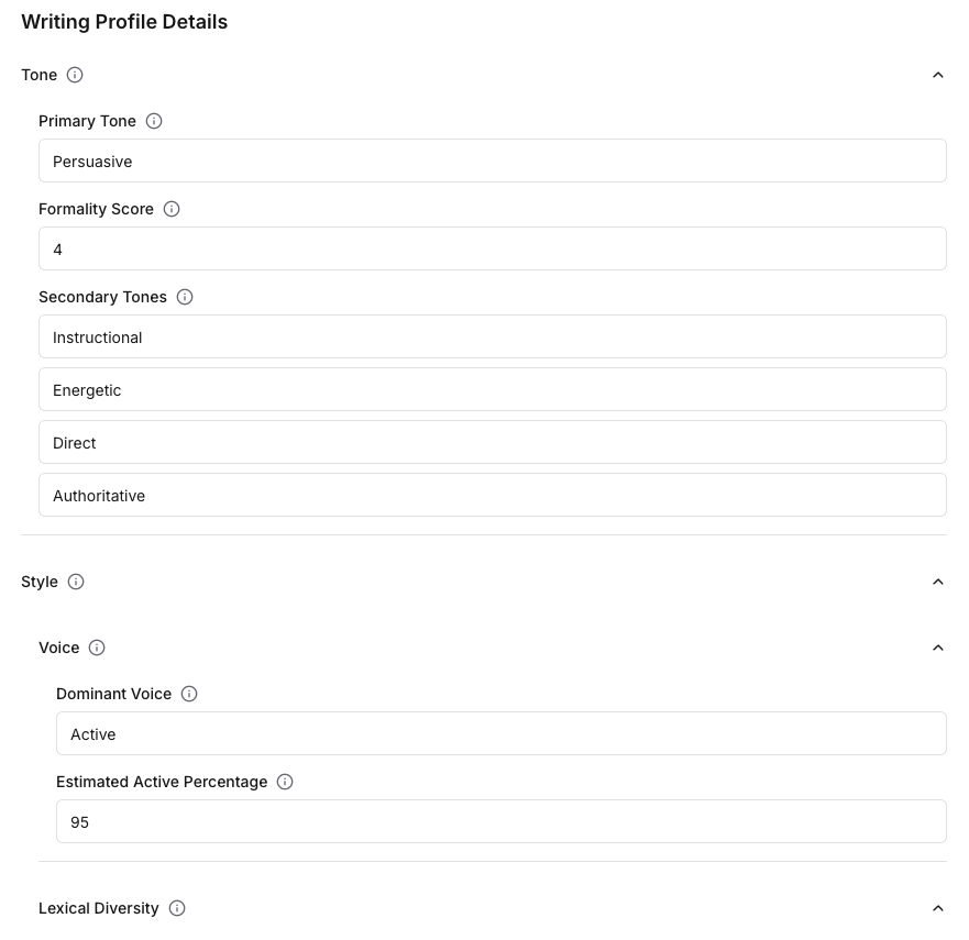 Perhaps the most striking metric in our analysis is the dominance of the active voice. Jonathan’s writing is 95 percent active. In a world of corporate passive voice, this stands out immediately.